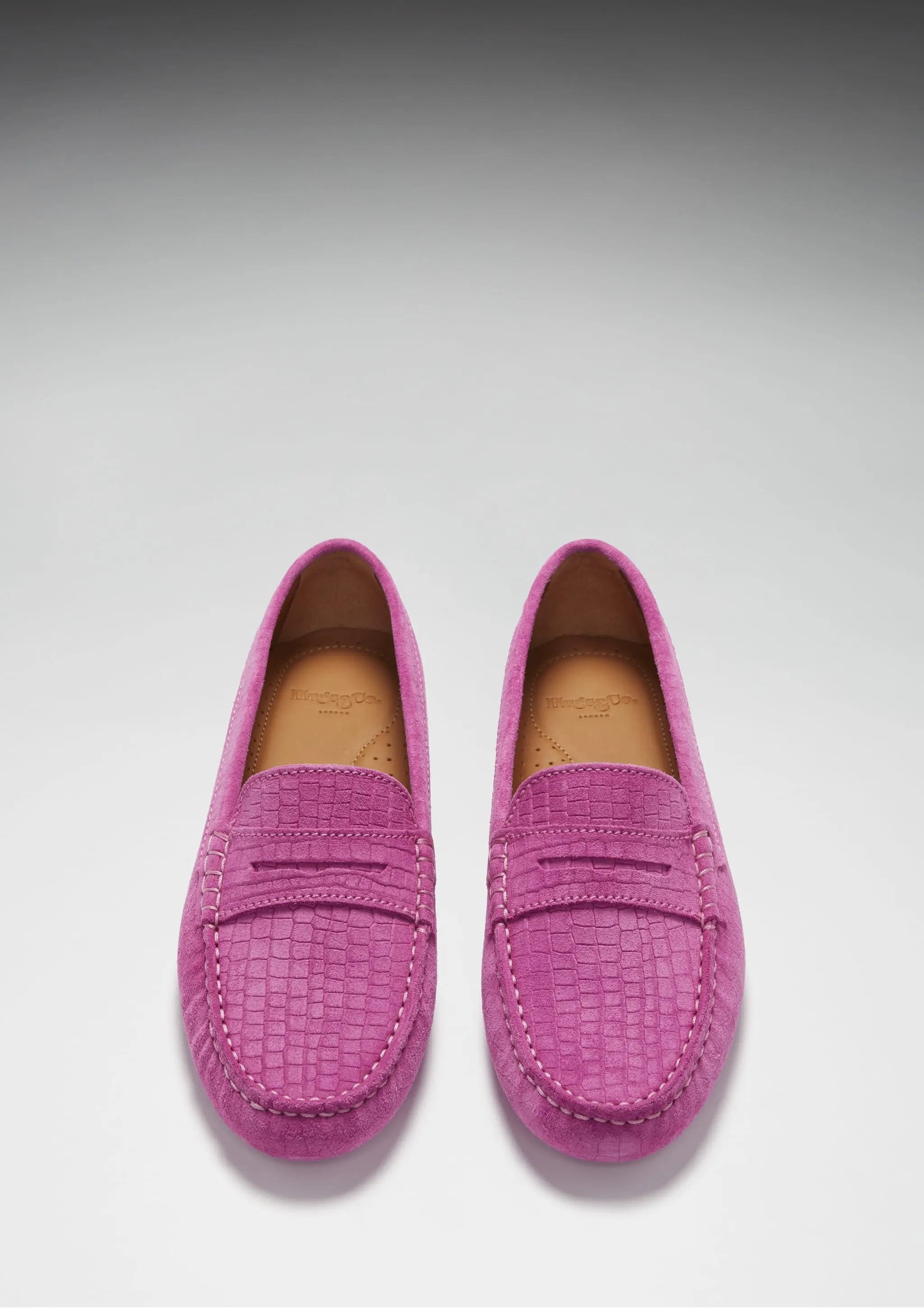 Penny Driving Loafers for Women Hugs & Co. - Pink Embossed Suede