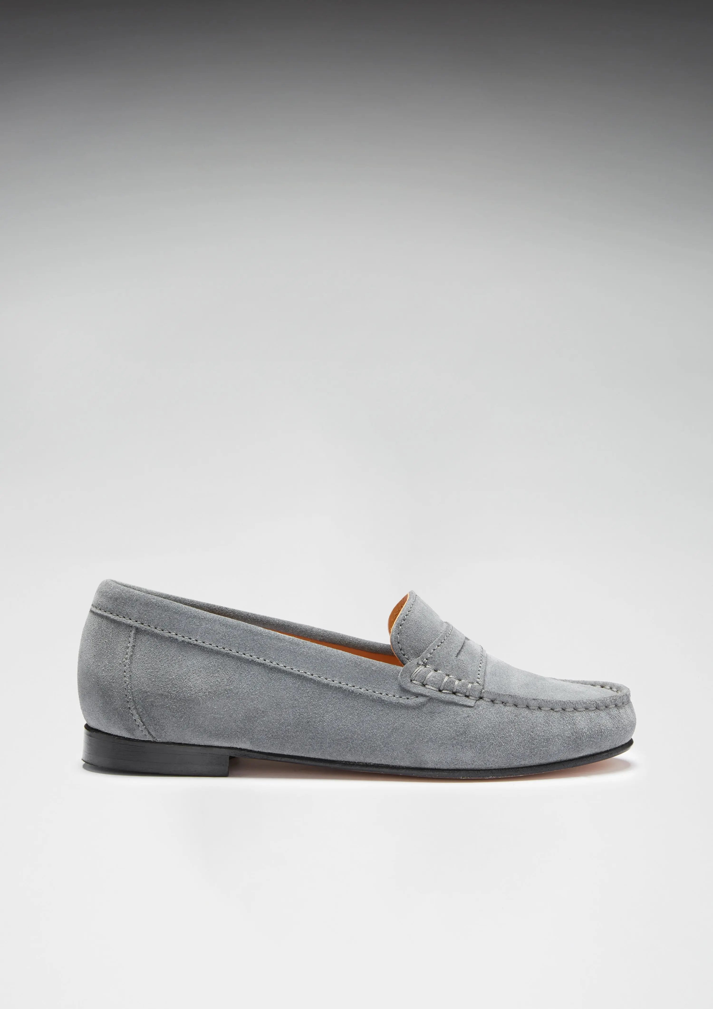 Our Women's Penny Loafers blend classic style with contemporary design. Made from luxurious slate grey suede, these loafers offer versatility that seamlessly integrates into any wardrobe. They are perfect for both casual and formal occasions, so you can feel stylish wherever you go. Because of their timeless appeal, you can pair them with jeans, skirts, or dress pants, making them a vital addition to your shoe collection.