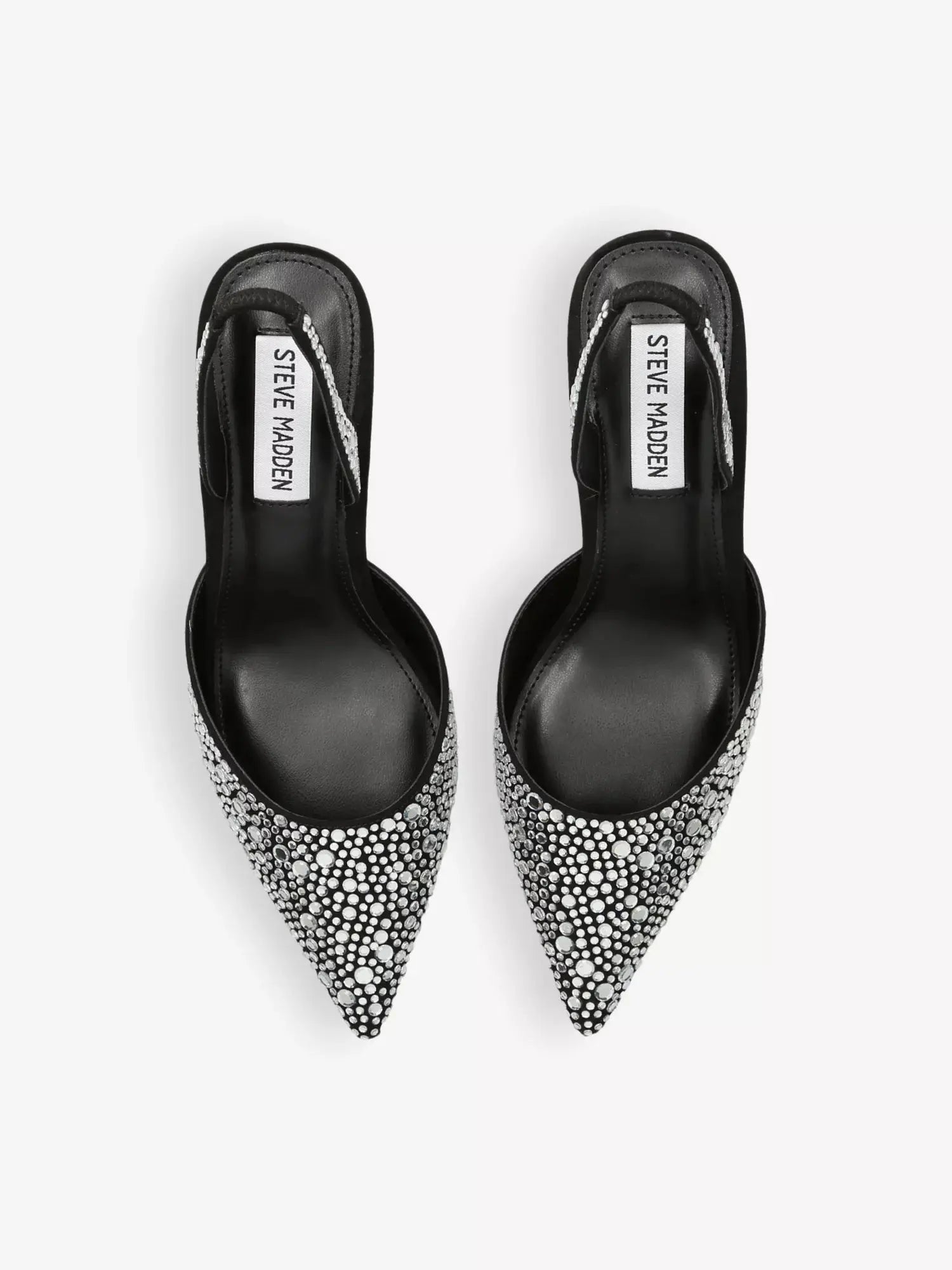 Add a touch of whimsy to your wardrobe with the Diamante-Embellished Heels from Steve Madden in classic black. These enchanting heels are adorned with glamorous diamante embellishments that sparkle and shine, making them the perfect companion for any event where you want to sparkle like a star.
