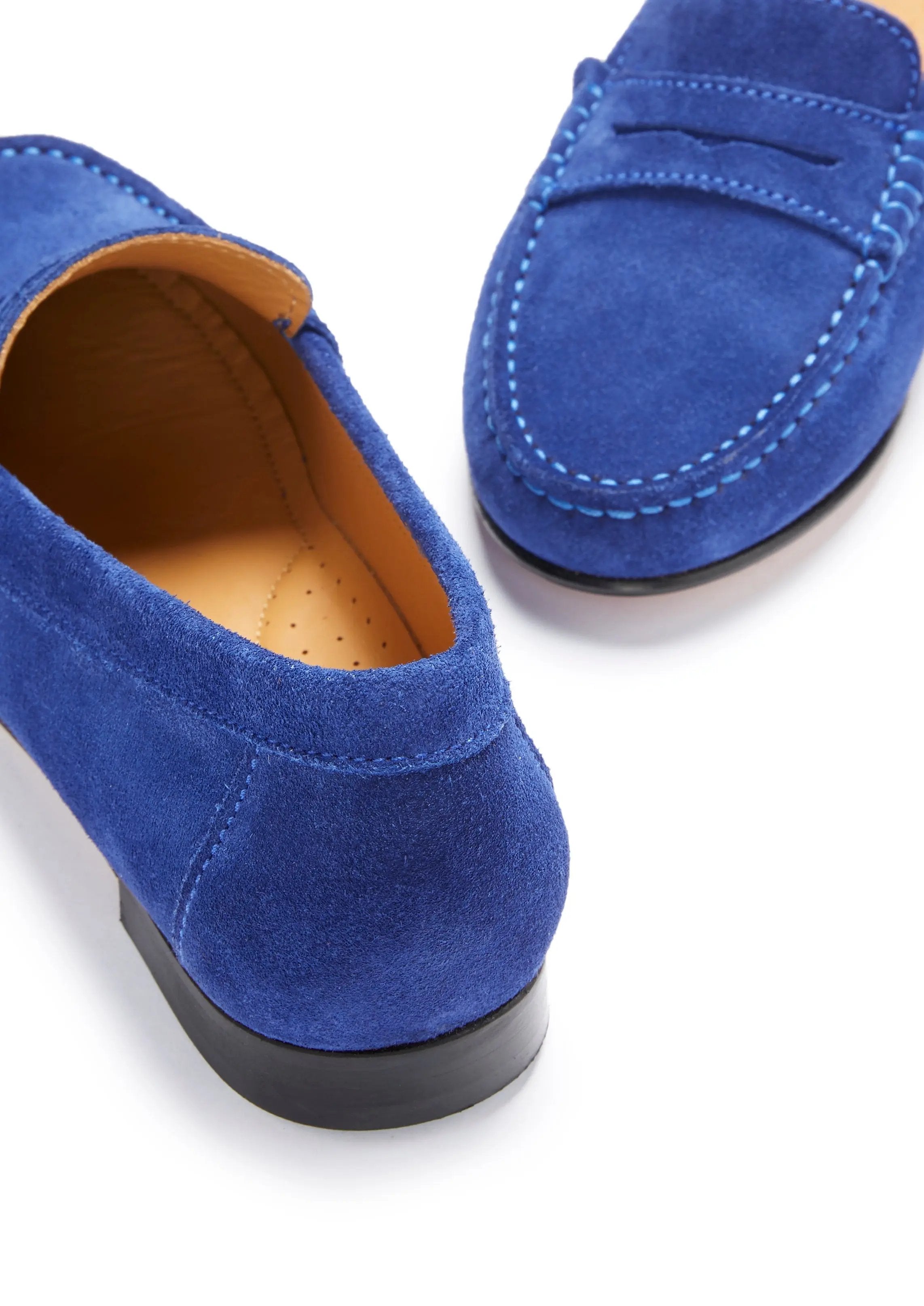 Elevate your style with the Penny Loafers from Hugs & Co., crafted in an enchanting ink blue suede that whispers elegance with every step. Made from luxurious Italian suede, these loafers not only wrap your feet in a soft, sumptuous embrace but also boast a timeless appeal that effortlessly transitions from casual to chic.
