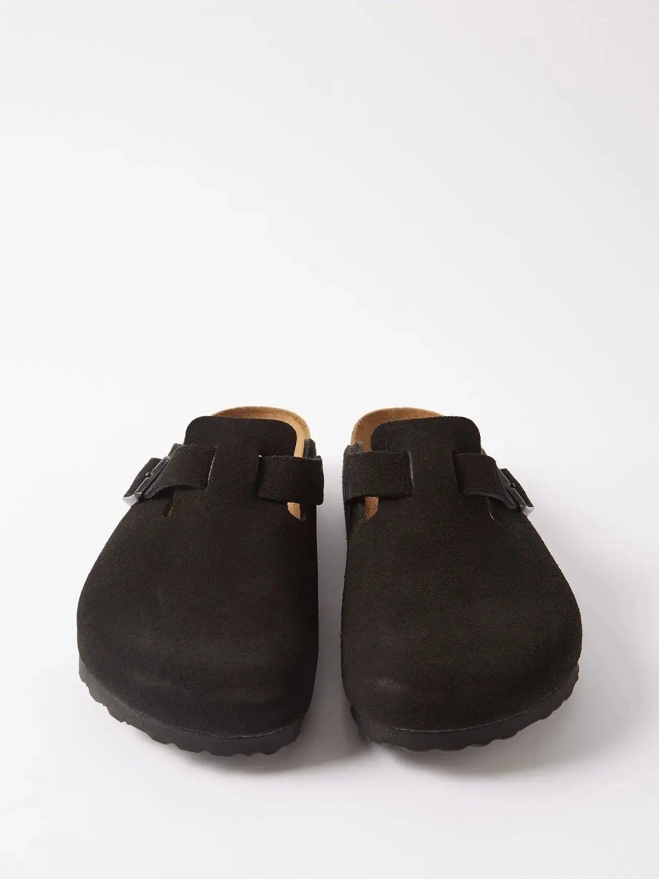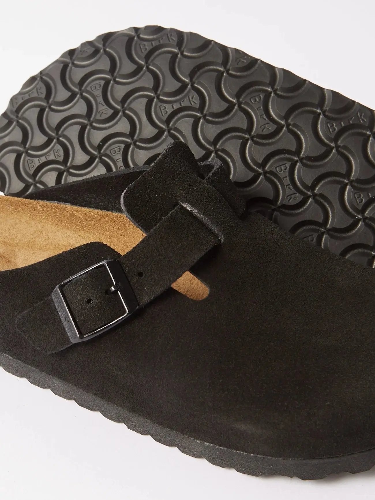 Birkenstock Boston - Unisex - Black Soft Footbed Suede Leather