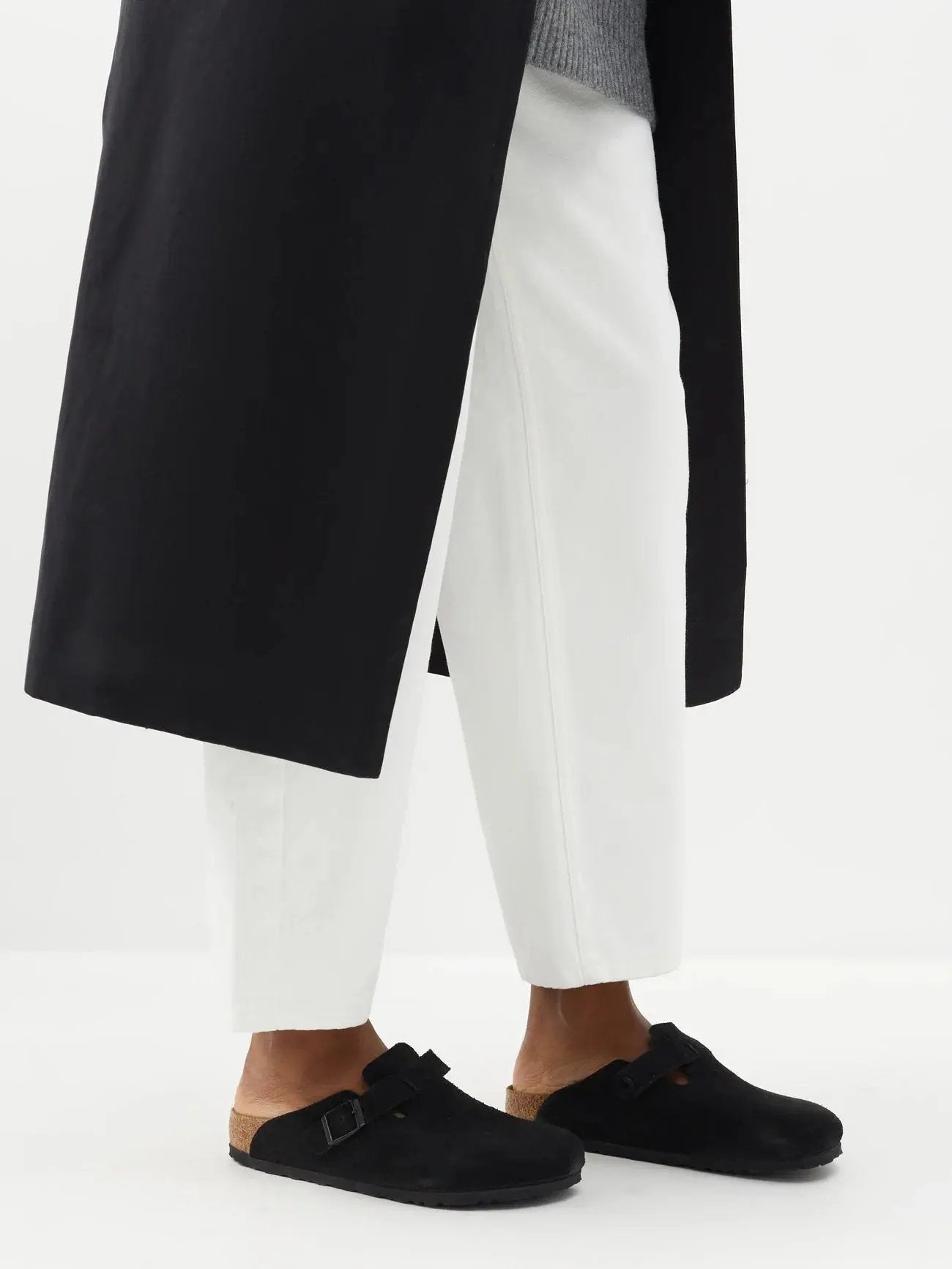 Step into everyday luxury with the iconic Birkenstock Boston in Black Suede, a timeless clog that goes with everything. Designed with the original contoured cork-latex footbed that molds to your foot for personalized comfort, it’s finished with soft premium suede and an adjustable metal buckle for the perfect fit.