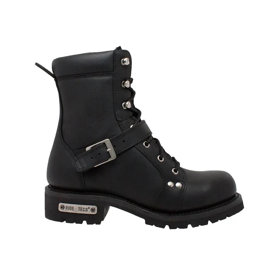 8" Zipper Lace Black Leather Boots - Men's - Black